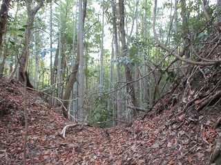 | 今城のある尾根へ。 | 今城の堀切。 |