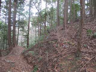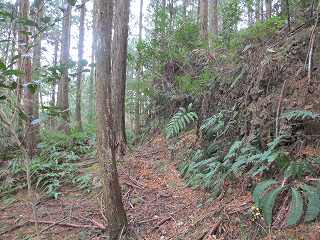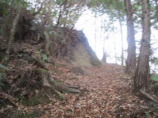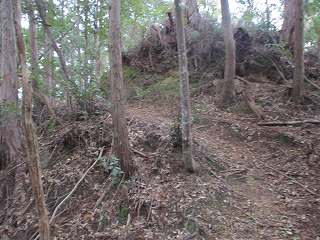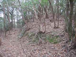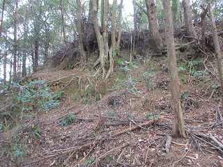 | 尾根上の切通し。 | 2郭の城塁。 |