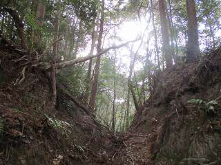 | 3郭手前の二重堀切。 | 堀切側面部。 |