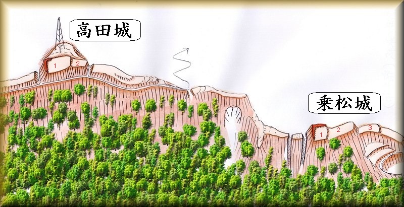 高田城、乗松城いずれも、地元領主の城というよりは、布城の支城として構築されたものであったと思われる。