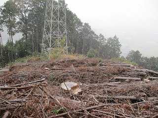 | 1郭の土塁。 | 1郭の北側下に鉄塔が建てられている。 |