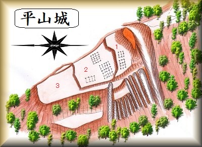 平山城の歴史等については不明だが、地元の有力豪族の居城であったものと推定される。