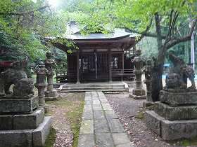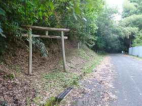 という城なので、城址に向かうにはこの神社を目指していけばよいわけなのであるが、この神社は小さいためか地図には掲載されていない。城の南方に養泉寺という寺院があるので、まずはこれを目標にしていくといいかもしれない。この寺院から北側にまっすぐに進んで行く道があり、これを進んで行けば、神社の参道と鳥居が見えてくる。その脇には駐車スペースがあるので、車はそこに停めておくことができる。