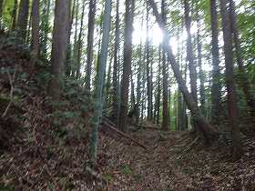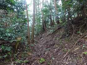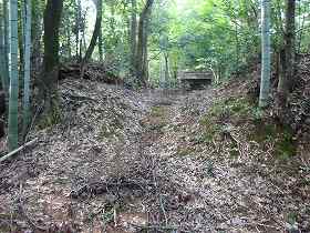 | 1郭先端の堀切。 | 東側の横堀を通っていく。 |