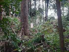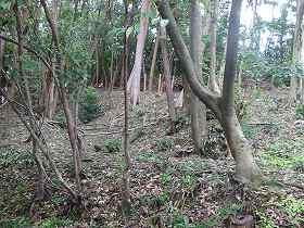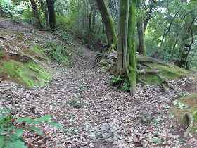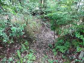 | 神社北側下にある横堀。 | 神社背後の堀切。 |