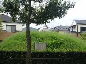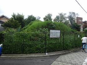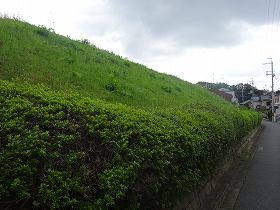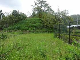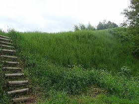 | 大宮土塁の東の端部分。 | 側面部には階段が付けられているのだが、カギがかけられていて、柵の中には入れない。 |