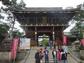 | 北野天満宮。 | 土塁を利用した御土居もみじ苑の入口。鍵が掛けられていた。 |