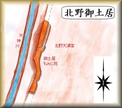 北野御土居は、北野天満宮の境内にあり、御土居もみじ苑として整備されている。したがって、これを訪れるためには北野天満宮を目指していけばよい。