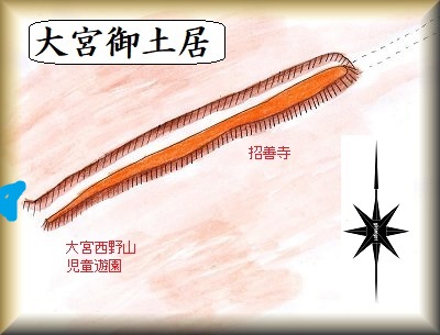 地図を見てみると分かるが、大宮公園の土塁とまったく角度が同じであり、大宮公園土塁の延長線上に存在していたことがよく分かる。
