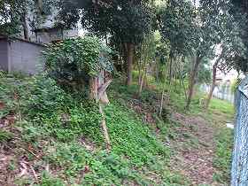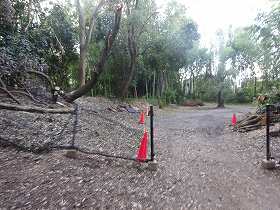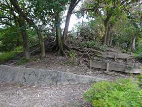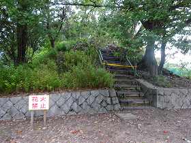 | 土塁。かなり大規模なものである。しかし立ち入り禁止となっていた。花火禁止の看板もある。上で花火をするやからがいたのであろうか。 | こちらも土塁。 |