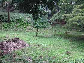 | 西側の土塁。 | 北側には堀跡らしき窪みも見られる。 |
