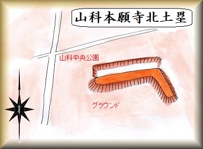 山科本願寺の土塁は、山科中央公園内に残っている。したがって、この土塁を見るためには、この公園を目指していけばよい。また、案内板が公園の西側の入り口に設置されている。