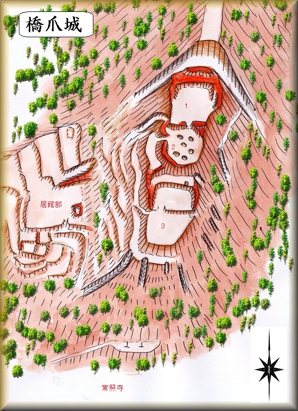 橋爪城は、常照寺の背後にそびえる比高50mほどの山稜に築かれている。ということなので、常照寺を目指していくとよいと思う。