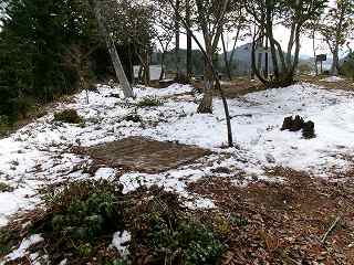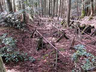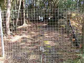 柵の中に入って行くと、山道が付けられている。それを進んで行った所、古い墓地の所に出た。