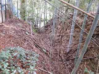 | 堀。 | 土橋の側面部。 |