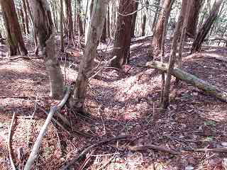 それでも周囲を散策してみると、横堀のような地形や、若干ではあるが切岸加工されたような形跡を認めることができた。一応、城であることは間違いないらしい。