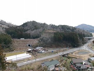 | 2郭へ。 | 西城から遠望する東城跡。 |