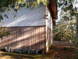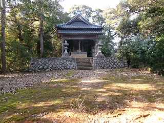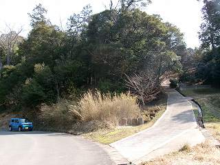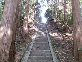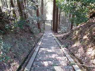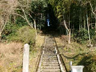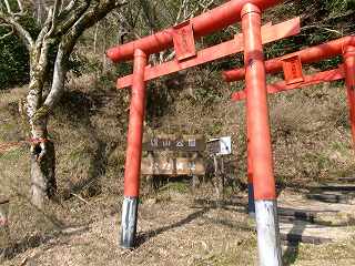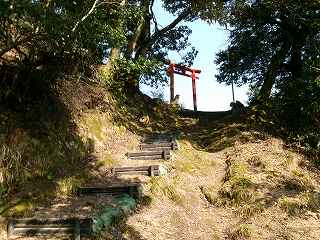 地形図を見ると、北側の山麓から神社のすぐ下まで車道が通じているようである。車で上がれる車道もありそうである。