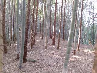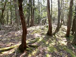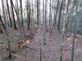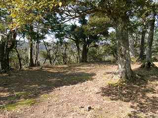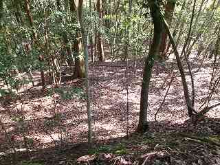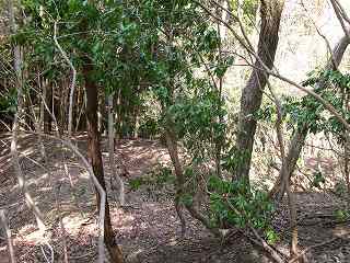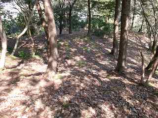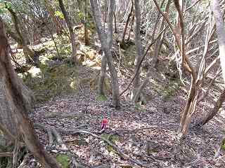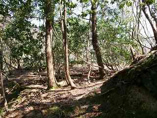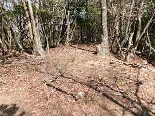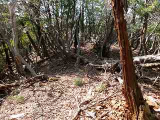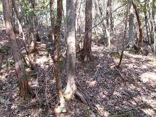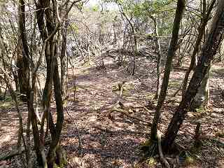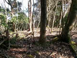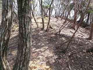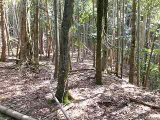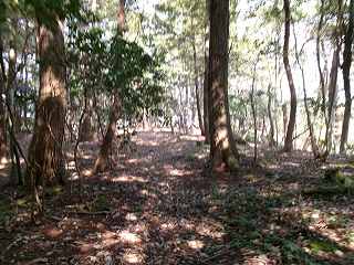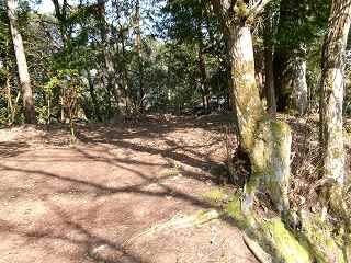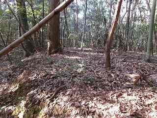 その先で尾根は南側にまがっていて、平坦な地形になっている。この辺りが1郭である。