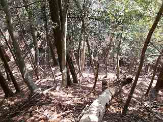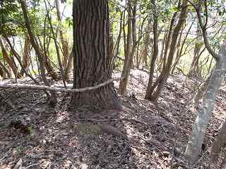 そこから尾根筋を登って行く。C城はB城から比高80mほど登って行った所にある。