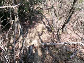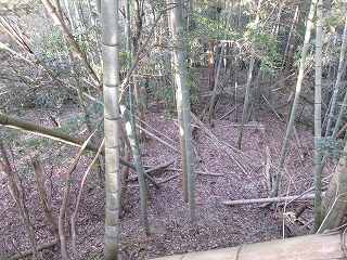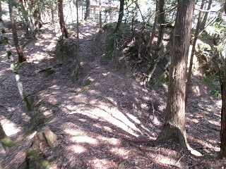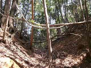 | 1郭腰曲輪。 | その下の二重堀切。 |