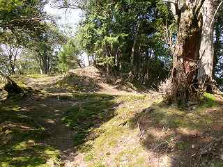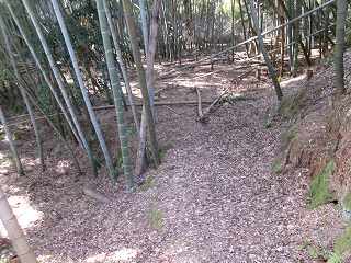 1郭の南側には土塁が盛られている。その外側は大堀切となっており、その先が2郭である。