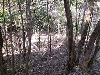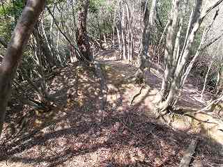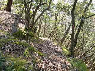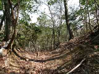 登ったところが2郭であり、そこから西側に尾根が延びている。自然の尾根といった感じである。