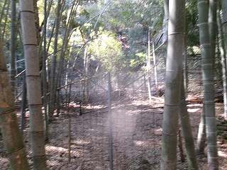 | 青原寺下の駐車スペースからA城を遠望。 | 獣除け柵の入口。これを開けて入って行った。 |