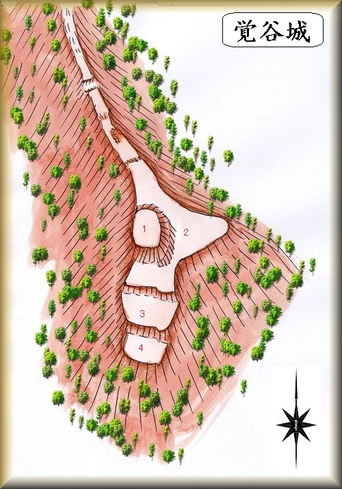 覚谷城は、安城の北東300mほどの所にある。比高20mほどの山稜である。