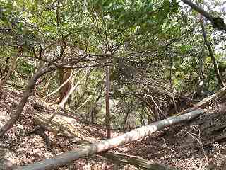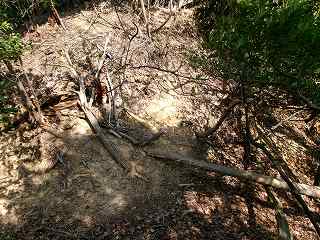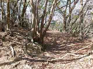 右手の尾根を登って行けば、1郭東側下の堀切の所に到達する。