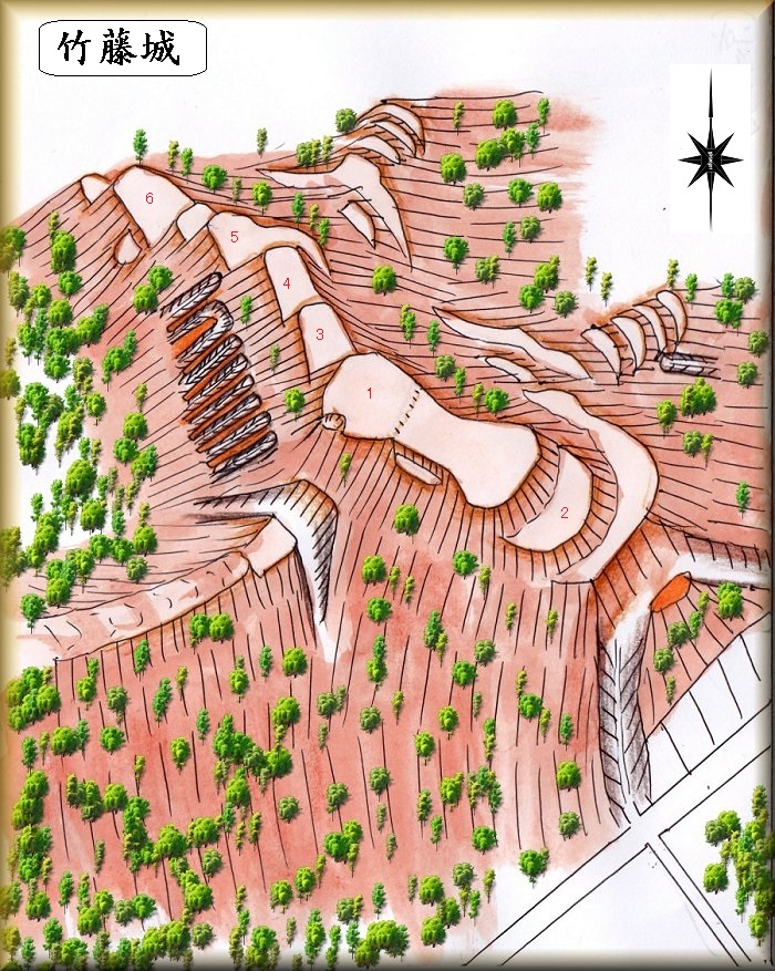 1郭の北東側下に3郭が形成されている。この下にも数段の郭が造成されている。