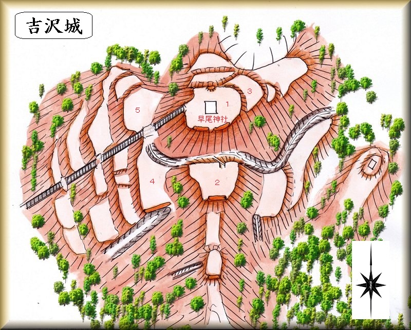 山頂の1郭には早尾神社が祀られているので、これを目印としていく。