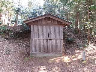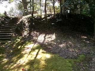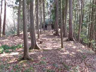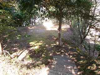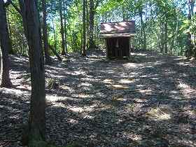 | 1郭内部には祠が祭られている。 | 1郭南側下の横堀。 |