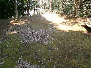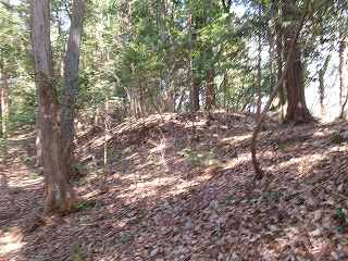 側面部から切通しの通路を回り込むようにして上がったところが3郭である。3郭の北側には土塁が盛られ、正面には2郭への通路が見えている。長軸20mほどの郭である。