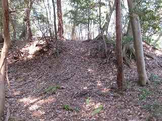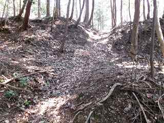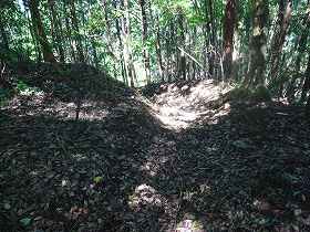 | 1郭城塁と堀切が見えてきた。 | 堀切。 |