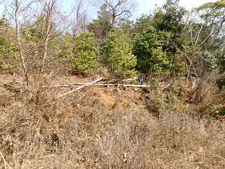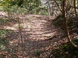 | 1郭内部。 | 1郭南側の堀切。よく見ると、間に畝があり二重になっている。 |