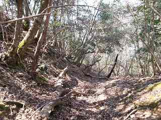 神社の鳥居の所から山道に入り込んで行く。神社からの比高は100mほどである。