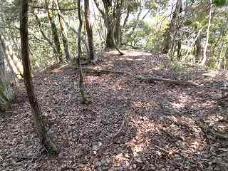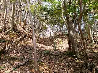 南東の二重堀切の先には自然地形のままの尾根があり、その先にも堀切が形成されている。
