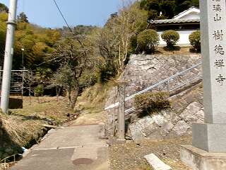 | 切通しの道を降って行く。 | 樹徳寺の脇まで来た。ここが参道入口。 |