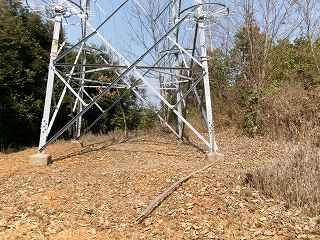 そうして進んで行くと、ささやかな堀切があり、その上に鉄塔が建てられているのが見えてきた。この上が溝尻支城である。