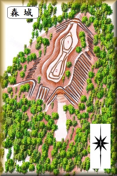 森城の城主は、当地の豪族であった高橋氏であると伝えられる。しかし、山上にはあまり広い生活空間はないので、平素は山麓のどこかの居館で生活していたものと思われる。森城は緊急時の籠城用の城郭だったのであろう。