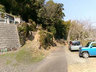 参道入口は樹徳寺の西側にあり、まっすぐ進んで行けば山道となる。樹徳寺の脇にはかろうじて1台くらいなら車を停められそうなスペースがあった。