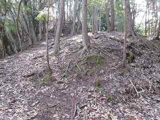 1郭の北東下部にも堀切があり、その先に小郭群がある。もともとかなり狭隘な地形だったために、このような小郭を連続させるような構造となったのであろうか。