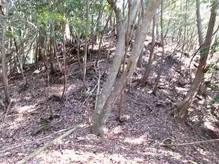 | その先は下りの斜面となって行く。 | 3郭西側下の小郭。 |