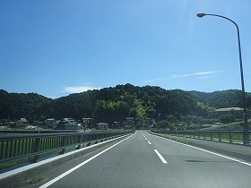 宇谷城は、由良川橋の南側にそびえている比高50mほどの山稜に築かれている。案内表示も何もないのだが、城山への入口は民家の脇のこの辺りにある。本来の登城道は北東側の山麓にあり、かつてはそこに案内板も立てられていたとのことであるが、現在は山麓部分が削られてしまっているので、そこから登ることはできなくなっている。