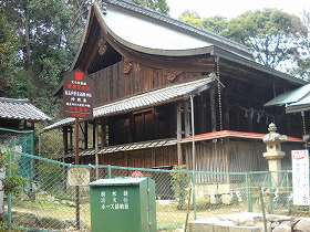| 酒解神社の少し下にある十七烈士の墓。禁門の変で敗れた長州方の真木和泉らがここで自決をした。 | その上にある酒解神社。 |