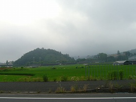 | 石垣のすぐ下はテニスコートとなっているが、本来はここも郭であった。 | 園部城の背後の小麦山。詰めの城といったものであろう。明治2年にはこの上に三重櫓が建築されたという。これが実質的に天守というべきものであった。 |