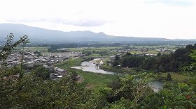 | 本丸下の4郭と物見曲輪。 | 物見曲輪から見た景色。川内川が蛇行しながら流れている。 |