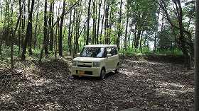 さて、山稜に差し掛かると公園入口の冠木門があるが、そのままさらに車で進んでいく。すると、内部のくぼ地を利用した射場があり、そこに車を停めて置くことができる。しかし、さらに進んで本丸内部まで車で進入することも可能である。