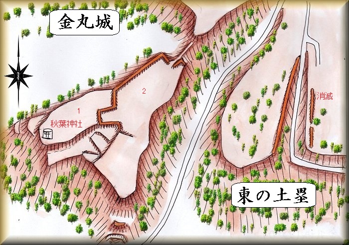 金丸城の場所。 東の土塁の場所。